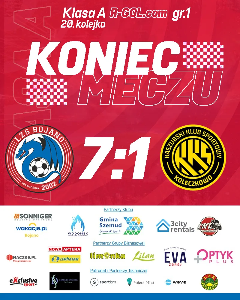 Wielkie emocje, grad bramek i absolutna dominacja gospodarzy – tak w skrócie można opisać sobotnie Derby Gminy Szemud. W ramach 20. kolejki A-klasy, LZS Dragon Bojano rozbił przed własną publicznością KKS Koleczkowo aż 7:1. Mecz rozegrany 25 kwietnia na „Dragon Arenie” przy ul. Warszawskiej nie pozostawił złudzeń, kto aktualnie dyktuje warunki w gminnym futbolu. Gospodarze od początku narzucili wysokie tempo, kontynuując swoją niesamowitą serię zwycięstw.