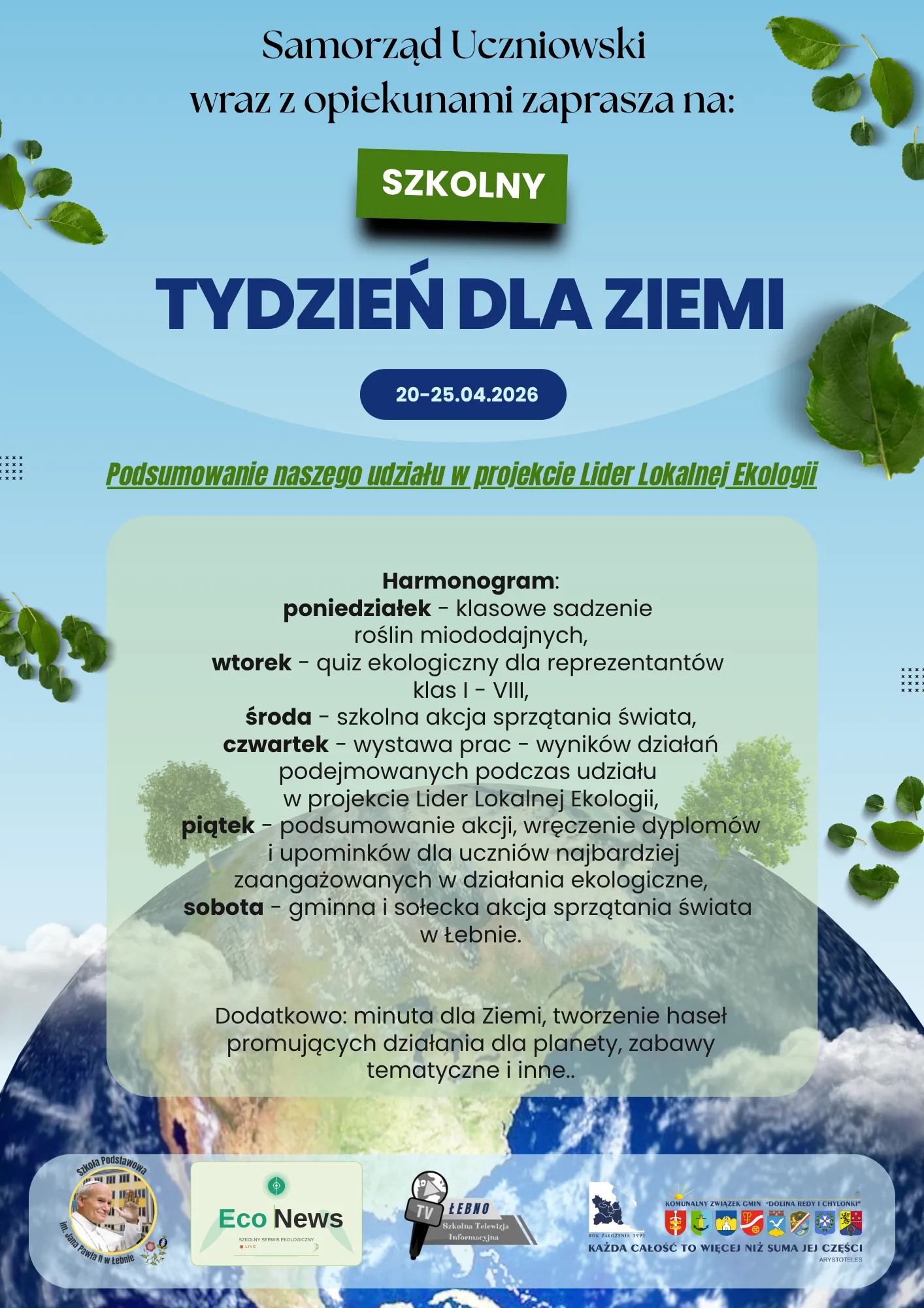 Samorząd Uczniowski wraz z opiekunami przygotował bogaty harmonogram, który angażuje uczniów na wielu płaszczyznach. W kolejnych dniach Tygodnia dla Ziemi uczniów czeka: