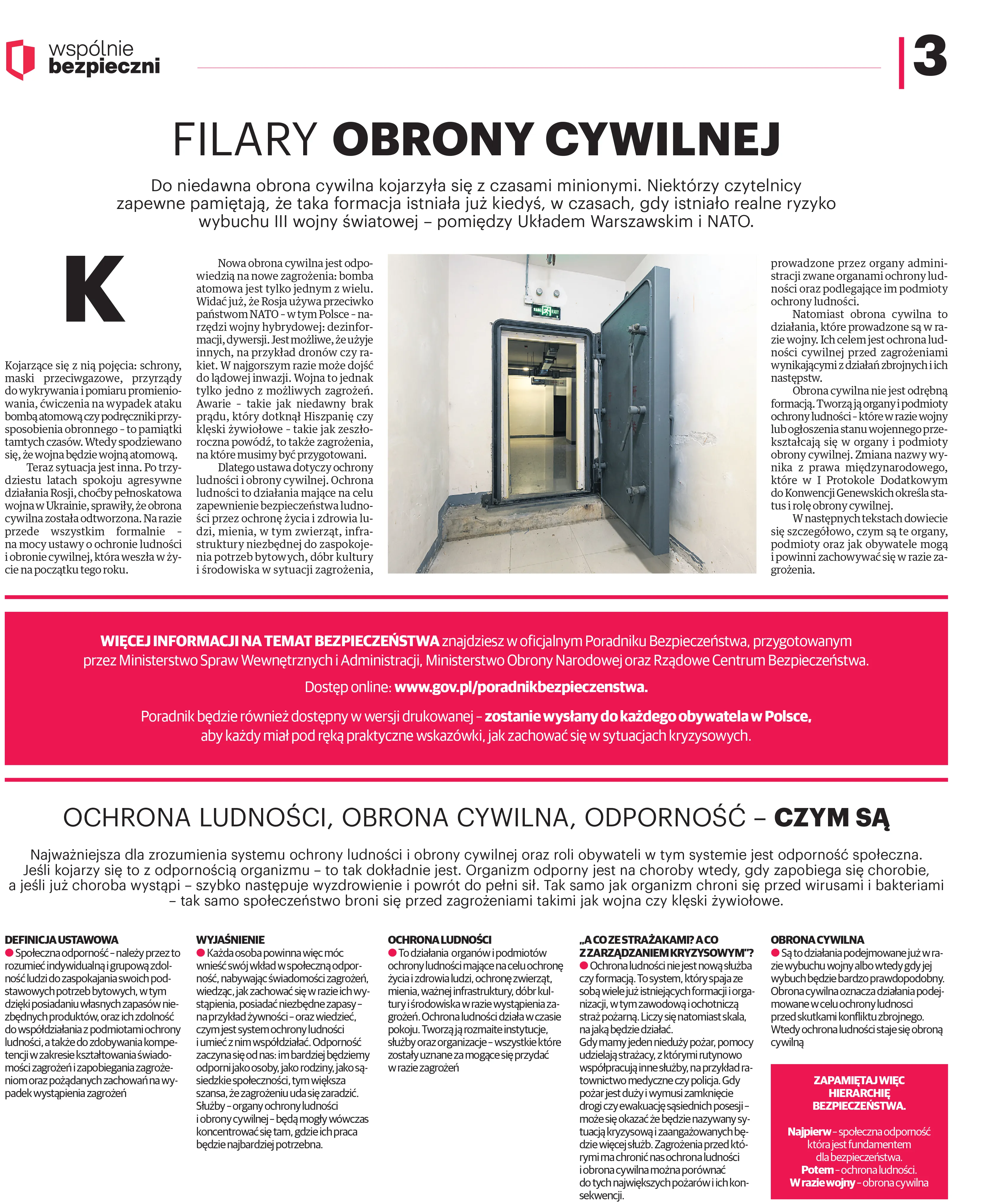 Więcej praktycznych wskazówek znajdziemy na stronie gov.pl w zakładce „Poradnik na czas kryzysu i wojny”. Jest to oficjalne kompendium wiedzy przygotowane przez MSWiA, MON oraz RCB. W serwisie tym można m.in. zagrać w grę, która w przystępny sposób uczy, jak prawidłowo skompletować plecak ewakuacyjny, oraz pobrać instrukcję skompletowania plecaka do druku. Oficjalny adres poradnika pod tym linkiem.