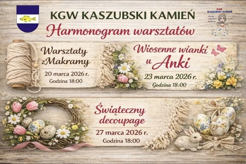 Wiosna to czas nowej energii i przygotowań do Świąt Wielkanocnych. Koło Gospodyń Wiejskich „Kaszubski Kamień” serdecznie zaprasza mieszkańców Sołectwa Kamień oraz całej Gminy Szemud do wspólnego, twórczego działania. Przed nami cykl warsztatów, podczas których można własnoręcznie przygotować niepowtarzalne ozdoby.