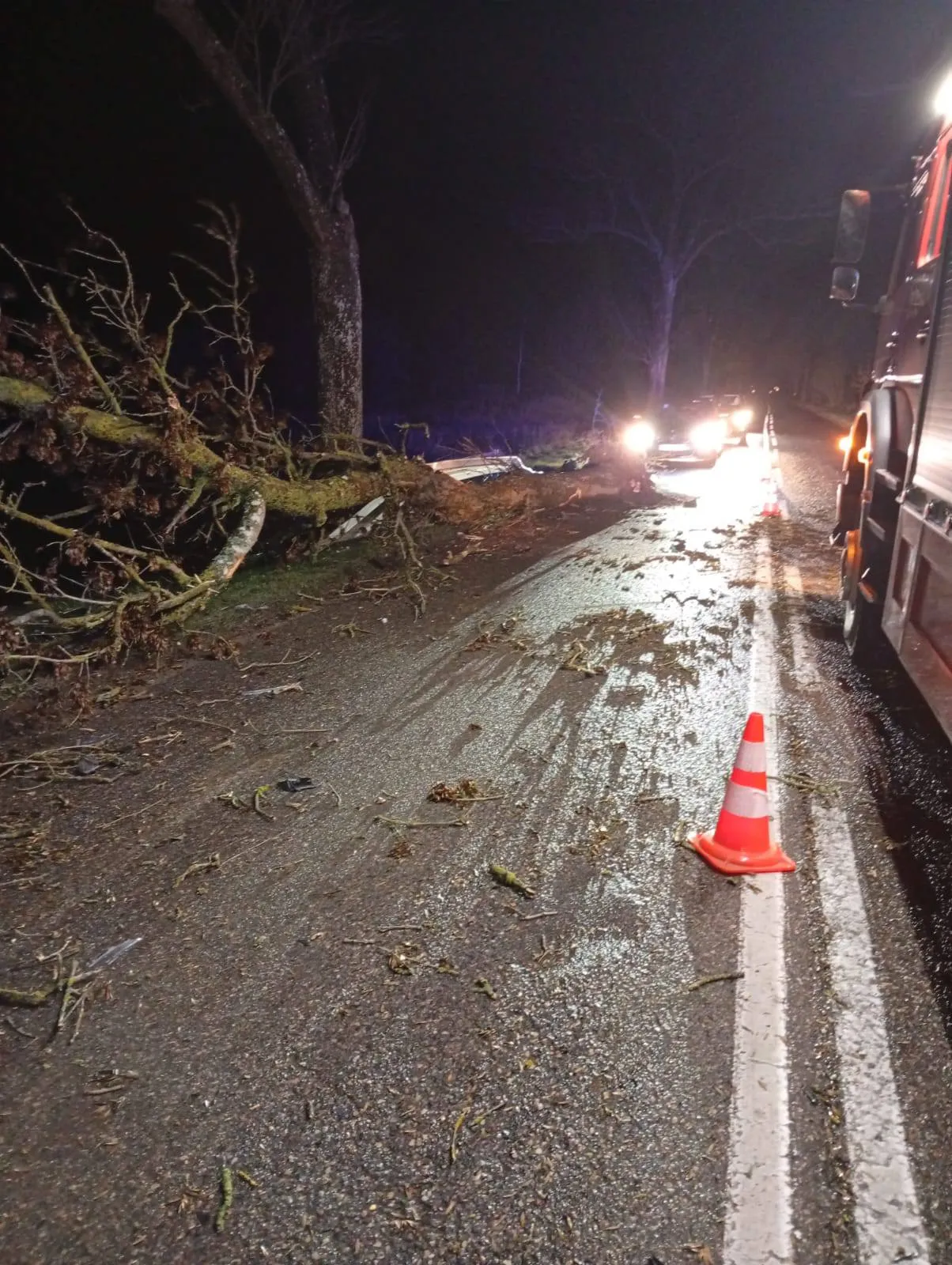 Wczoraj około godziny 21:00 doszło do groźnie wyglądającego zdarzenia drogowego w miejscowości Kielno. Na ulicy Oliwskiej, tuż przed skrzyżowaniem z ulicą Transportową, kierujący samochodem dostawczym marki Ford Transit najechał na drzewo, które niespodziewanie runęło na jezdnię. Na miejsce zdarzenia natychmiast zadysponowano Policję oraz jednostkę straży pożarnej z Wejherowa i Ochotniczą Straż Pożarna z Kielna, aby zabezpieczyć teren i usunąć przeszkodę .