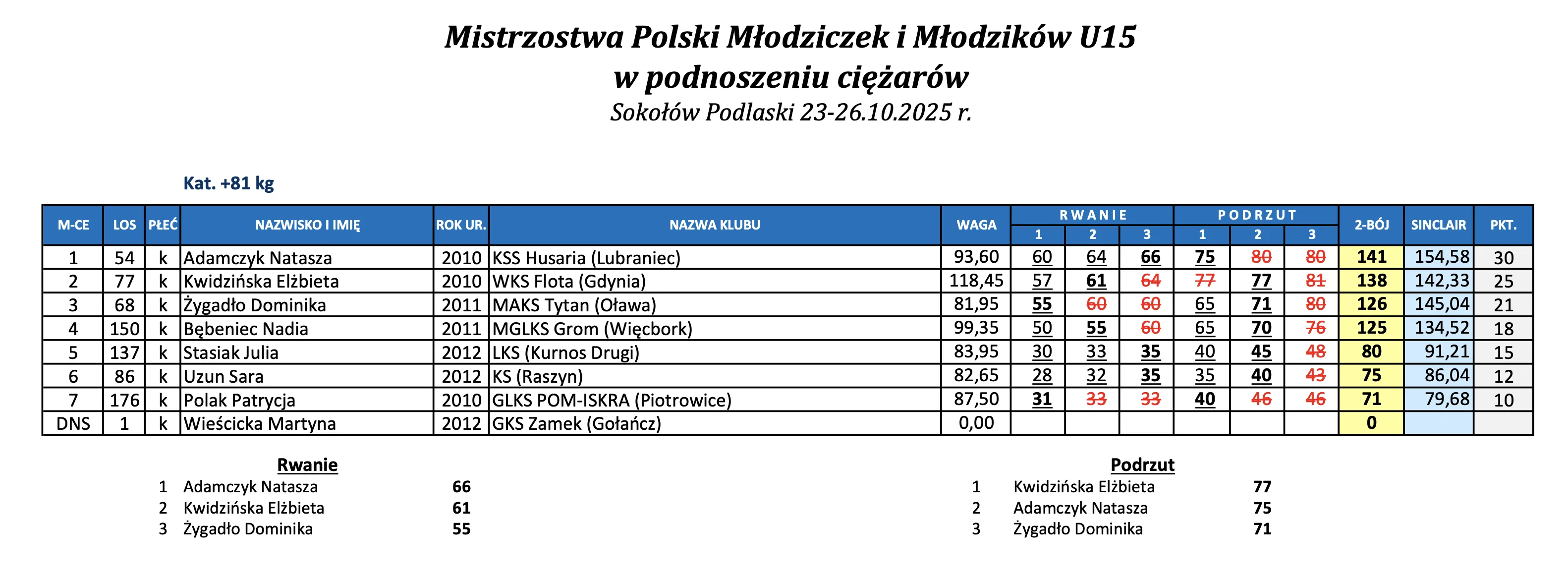 W dniach 23-26 października 2025 roku Ela Kwidzińska, młoda mieszkanka Częstkowa reprezentująca WKS Flota Gdynia, osiągnęła spektakularny sukces podczas Mistrzostw Polski Młodziczek i Młodzików U15 w Sokołowie Podlaskim. Rywalizowało tam blisko 178 młodych sportowców z 63 klubów. Ela Kwidzińska stanęła na wysokości zadania, udowadniając swoje wyjątkowe umiejętności w dwuboju olimpijskim.