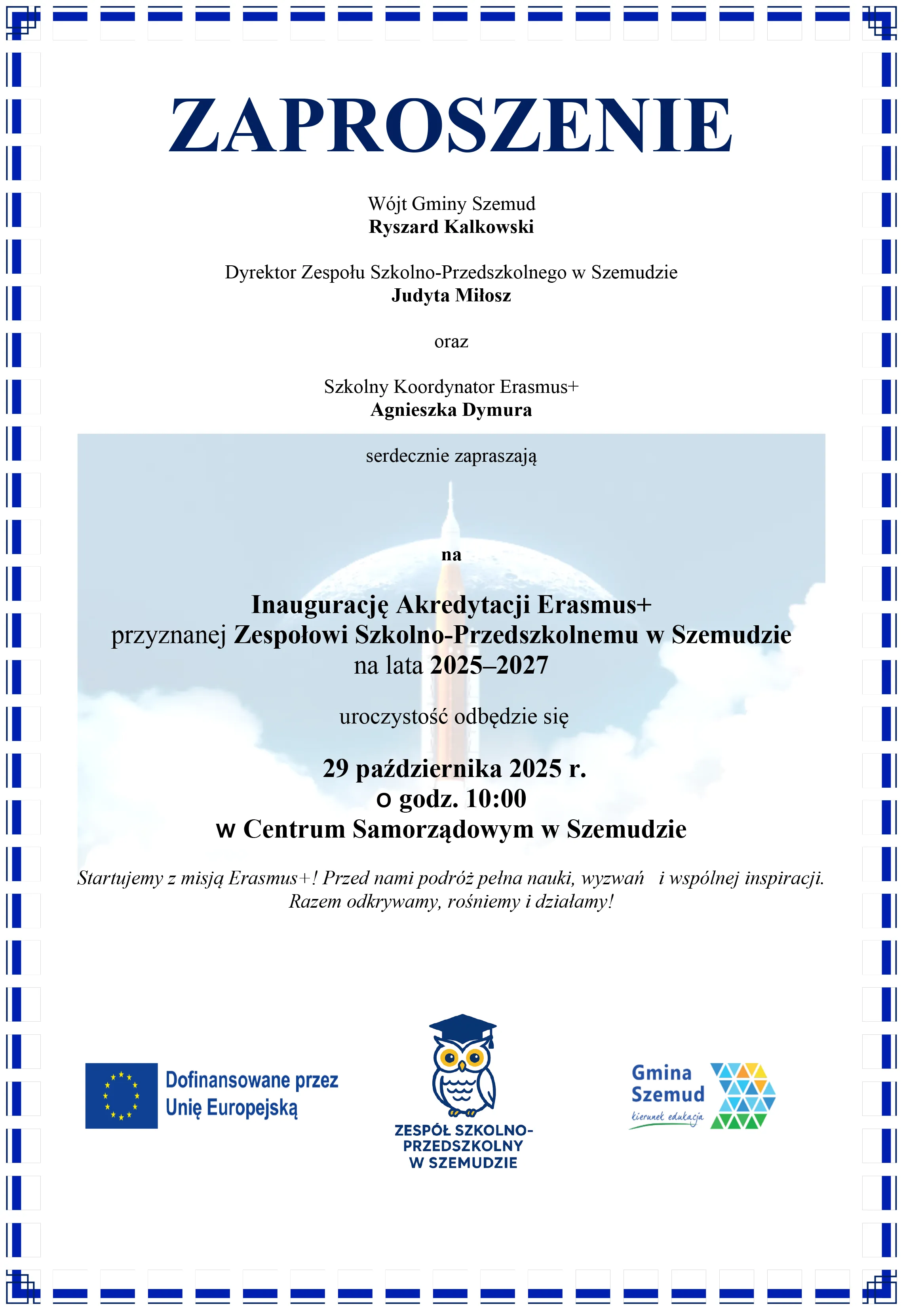 Zespół Szkolno-Przedszkolny w Szemudzie po raz trzeci zdobył prestiżową Akredytację Erasmus+. To wyróżnienie, przyznawane przez Komisję Europejską, potwierdza, że szkoła wdraża działania międzynarodowe w sposób systematyczny i z najwyższą jakością. Jak podkreślają sami organizatorzy, szkoła prowadzi długofalową strategię rozwoju, Erasmus+ stał się częścią jej DNA – trwałym elementem codziennego życia, który łączy naukę, relacje i troskę o dobrostan całej społeczności szkolnej.