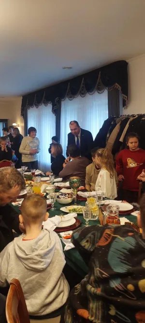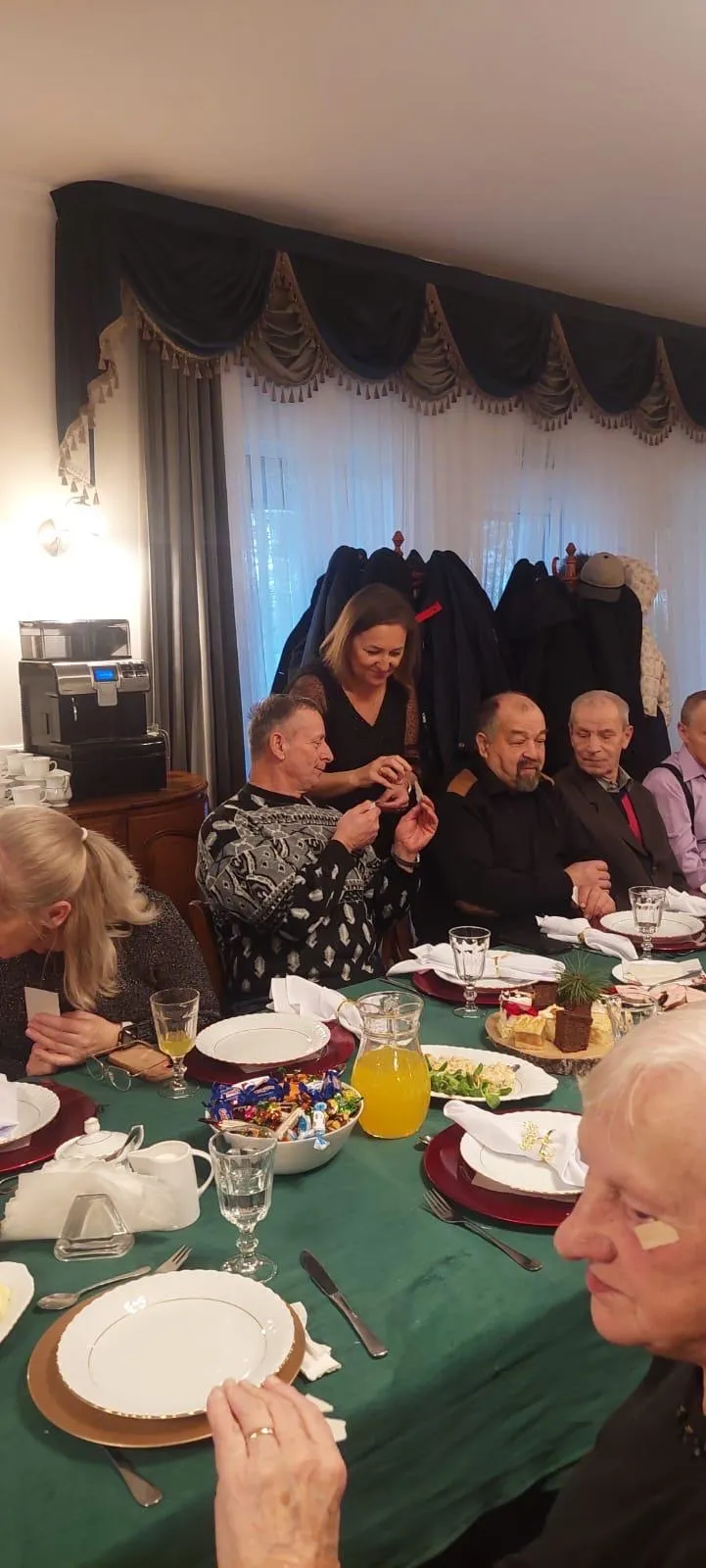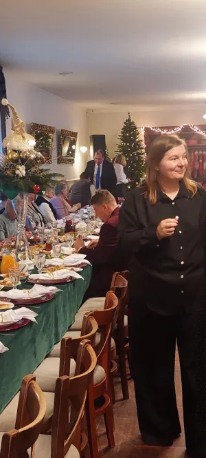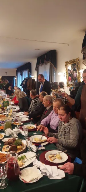 O przygotowanie wigilijnego stołu zadbała restauracja „U Grubego”, serwując tradycyjne, świąteczne dania. Uczestnicy spotkania, zgodnie z polskim zwyczajem, podzielili się opłatkiem i złożyli sobie życzenia. Nad sprawnym przebiegiem całego wydarzenia oraz opieką nad podopiecznymi czuwała kierownik GOPS, Justyna Bieszk.
