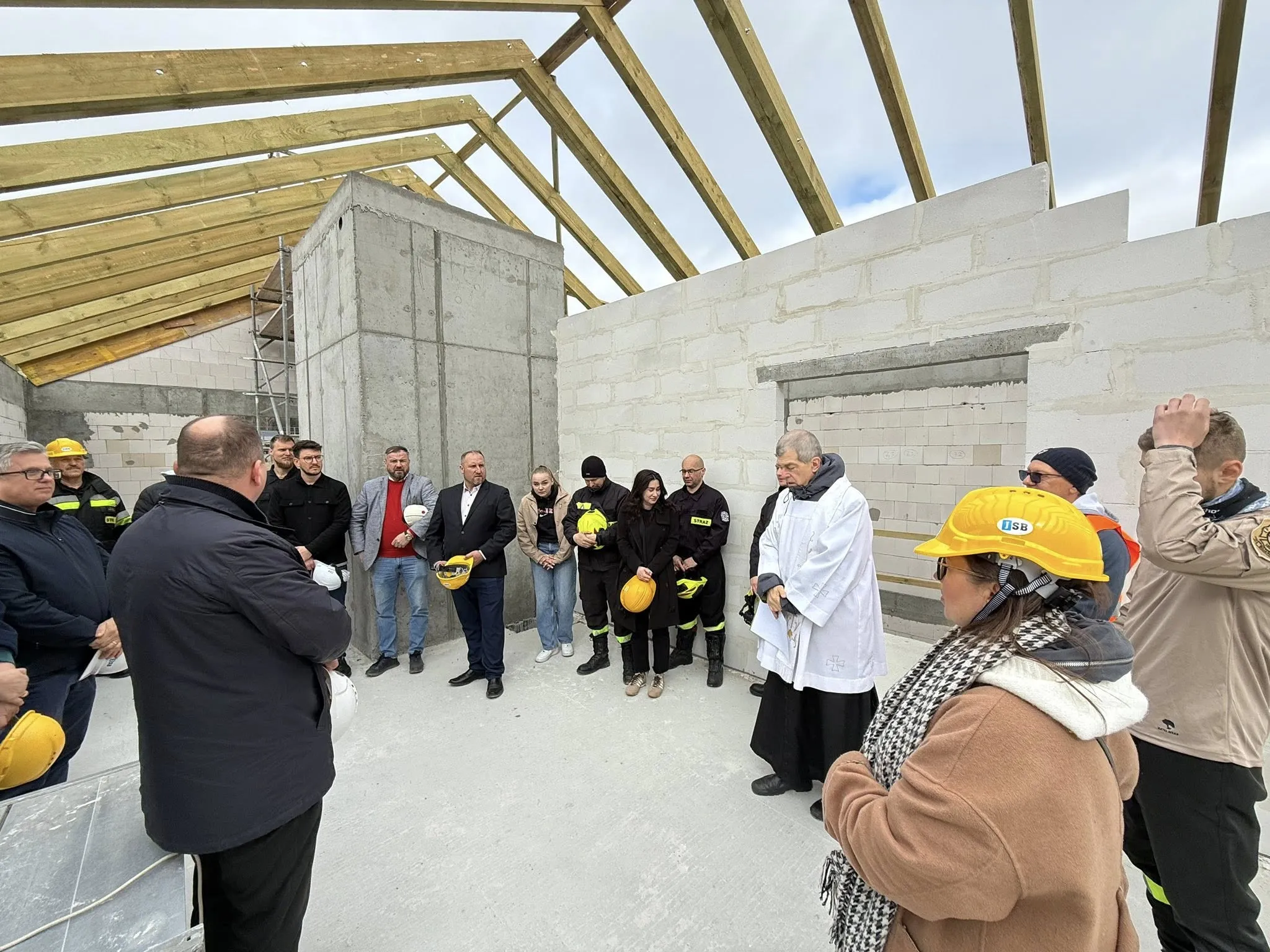 Zgodnie z obyczajem, wiecha na dachu to moment podziękowania dla ekipy budowlanej oraz wszystkich zaangażowanych w proces inwestycyjny. Podczas piątkowego spotkania budynek został poświęcony przez proboszcza parafii w Bojanie, ks. Piotra Maciołka.