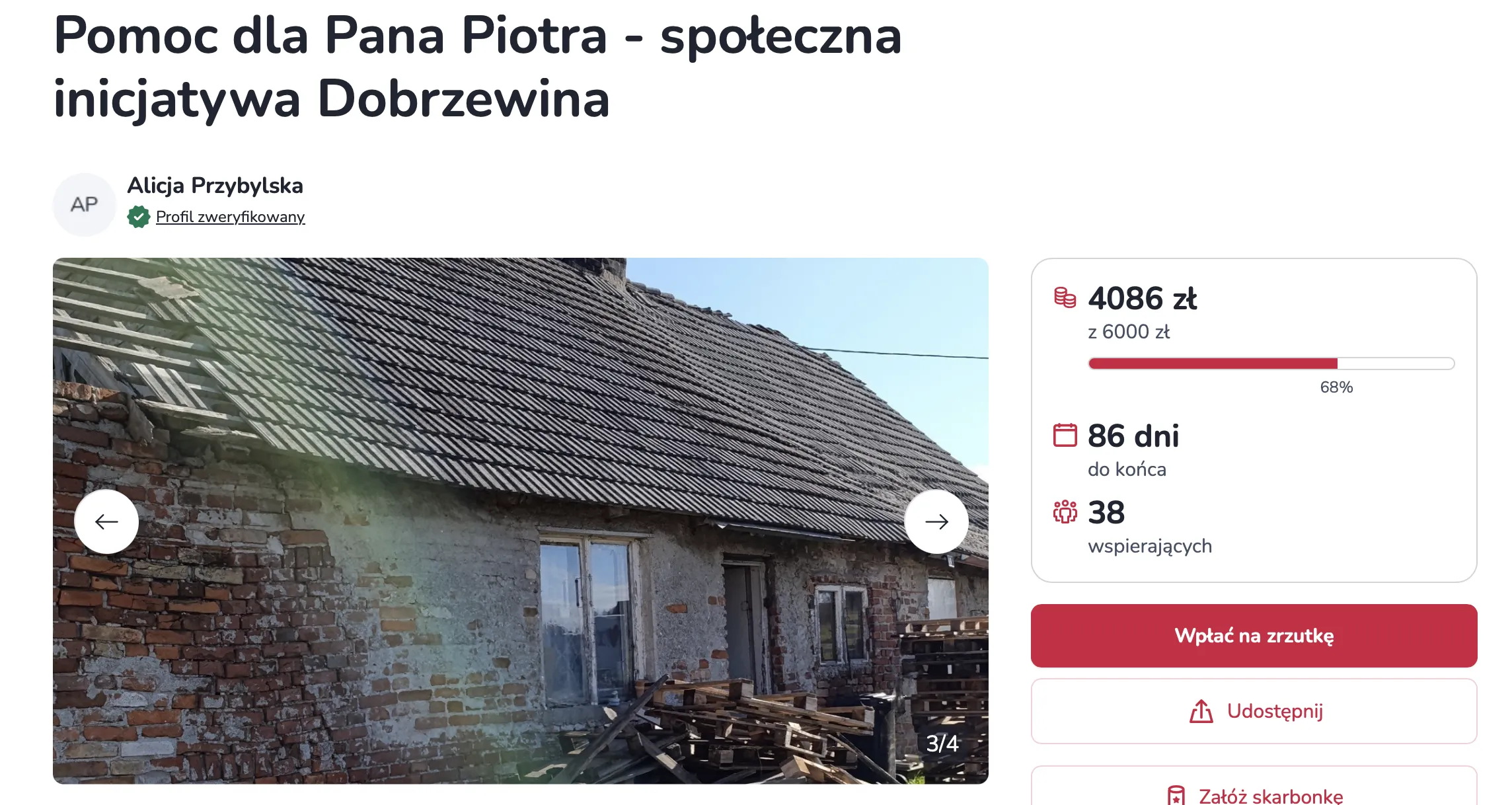 Poruszająca historia Pana Piotra, samotnie mieszkającego w zniszczonym i zagrzybionym domu, zmobilizowała lokalną społeczność. Mieszkańcy Dobrzewina, Sołtys, Koło Gospodyń Wiejskich „Rodzina z Dobrzewina”, ruszają z pomocą, organizując wspólną zbiórkę i remont w najbliższą sobotę, 8 listopada 2025 r.