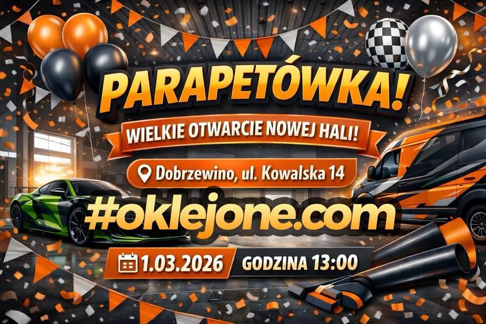 W niedzielę, 1 marca 2026 roku, Dobrzewino stanie się celem podróży dla wielu miłośników motoryzacji z naszego regionu. O godzinie 13:00 przy ul. Kowalskiej 14 odbędzie się uroczyste otwarcie nowej hali firmy oklejone.com. Wydarzenie połączone z dniem otwartym to okazja, by z bliska przyjrzeć się nowoczesnym technologiom personalizacji pojazdów.