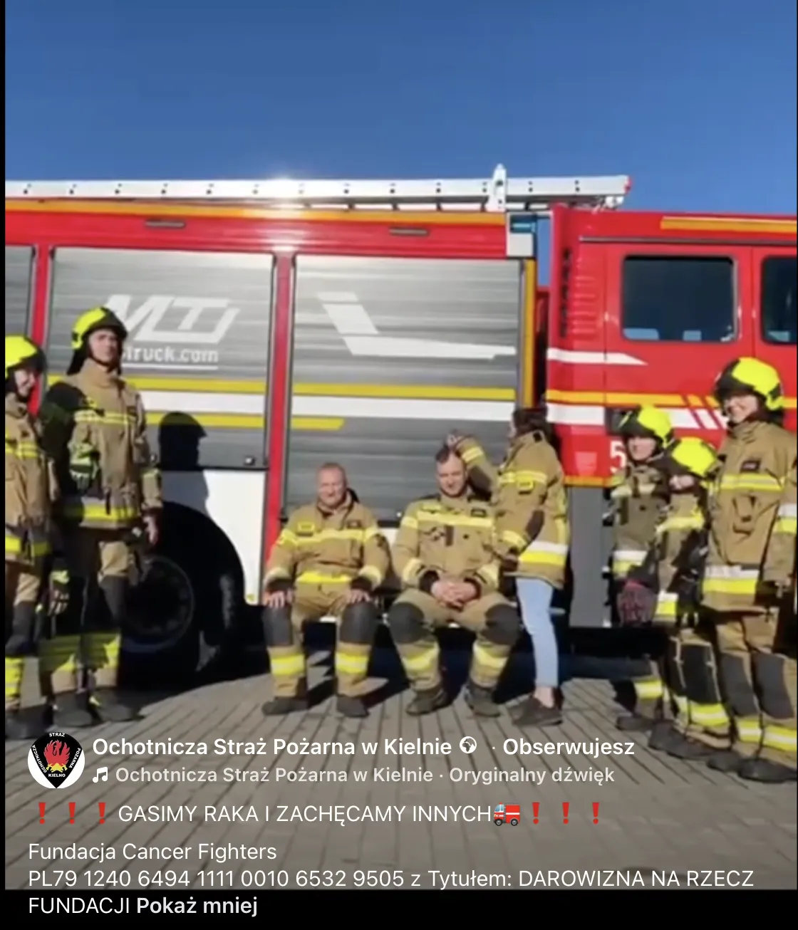 Wielka fala pomocy dotarła również do sołectw gminy Szemud, gdzie lokalne firmy i instytucje pokazały, że mają ogromne serca i potrafią zmobilizować się w słusznej sprawie, a w pomoc włączyły się między innymi OSP Kielno, której druhowie aktywnie zachęcali do wsparcia zbiórki w swoich mediach społecznościowych poprzez specjalny filmik promocyjny(dostępnym pod tym linkiem) będący inspiracją dla wielu mieszkańców, a kilku strażaków zdecydowało się nawet na wyjątkowy gest solidarności i zgoliło głowy na łyso oraz Bar Kaszubski Jula z Kielna, którego właściciele zdecydowali o przekazaniu części niedzielnego utargu bezpośrednio na konto Fundacji Cancer Fighters, dzięki czemu każdy gość odwiedzający tego dnia lokal stał się częścią tego wielkiego, ogólnopolskiego sukcesu.
