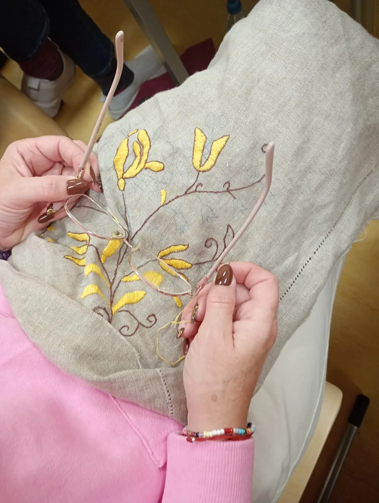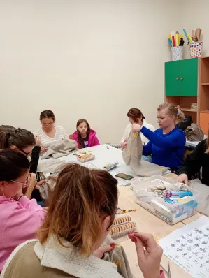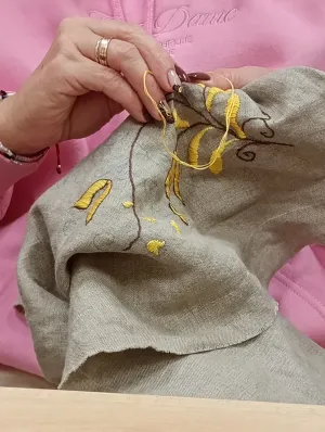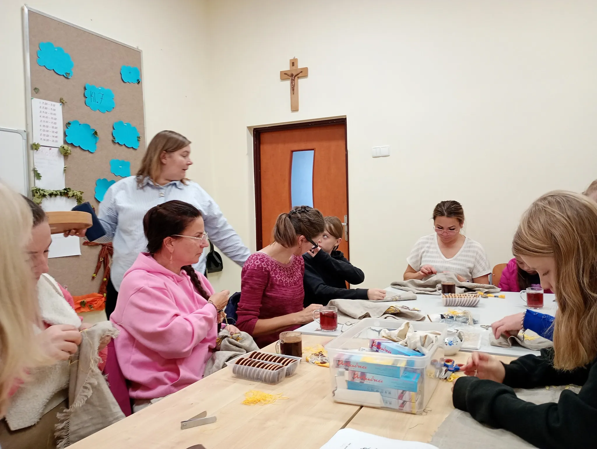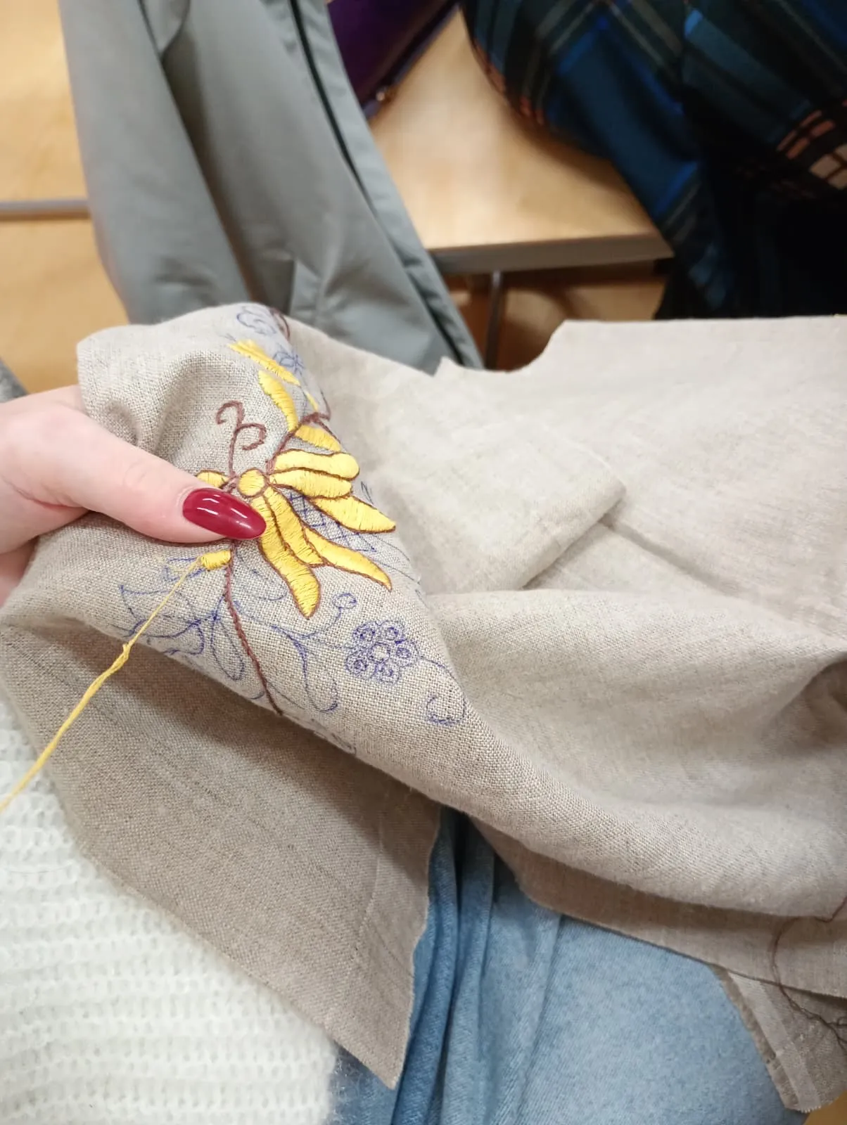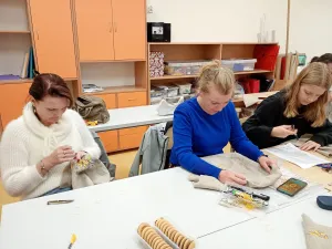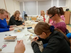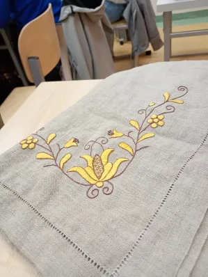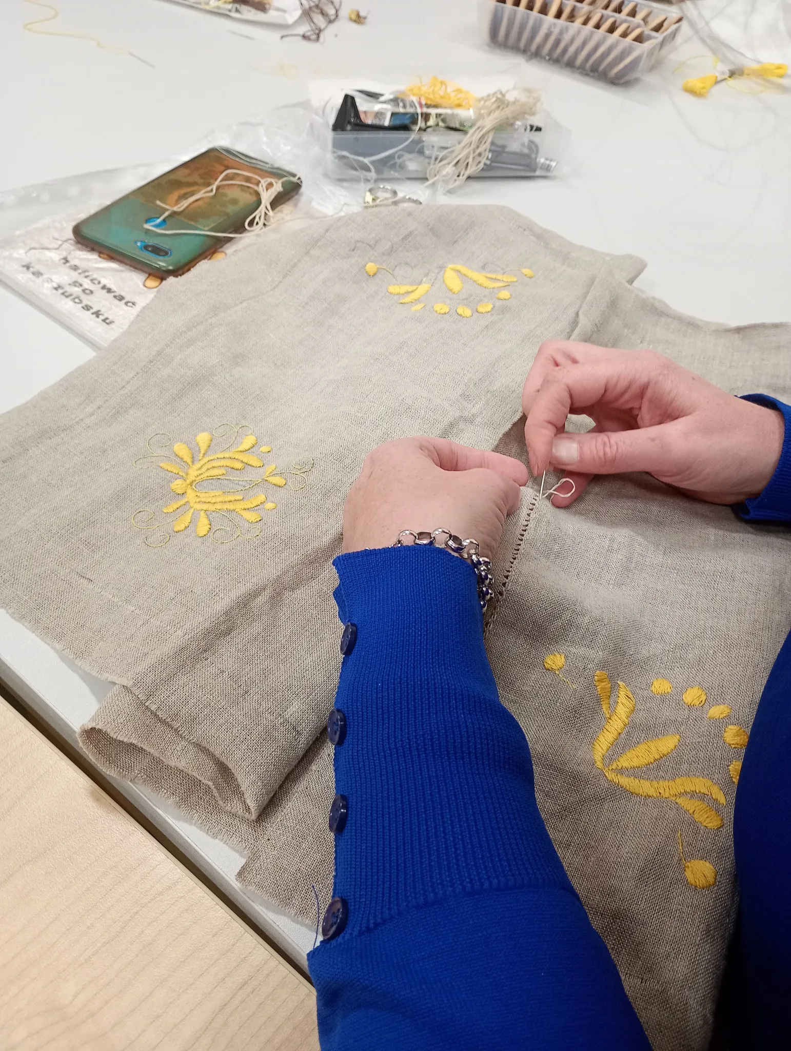 Ważnym elementem zajęć było jednak działanie praktyczne. Uczestniczki poznały i przećwiczyły ściegi używane w hafcie czepcowym na własnoręcznie wyszywanych serwetach, a także poznały techniki ich profesjonalnego wykańczania.