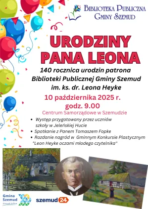 Już 10 października 2025 roku Gminna Biblioteka Publiczna im. ks. dr. Leona Heyke w Szemudzie, wraz z Gminnym Centrum Kultury, Sportu i Rekreacji, zaprasza na całodniowe obchody 140. rocznicy urodzin swojego Patrona. Przygotowano dwa bloki wydarzeń, dedykowane zarówno uczniom, jak i dorosłym miłośnikom kultury. Uroczystości odbędą się w Centrum Samorządowym w Szemudzie.